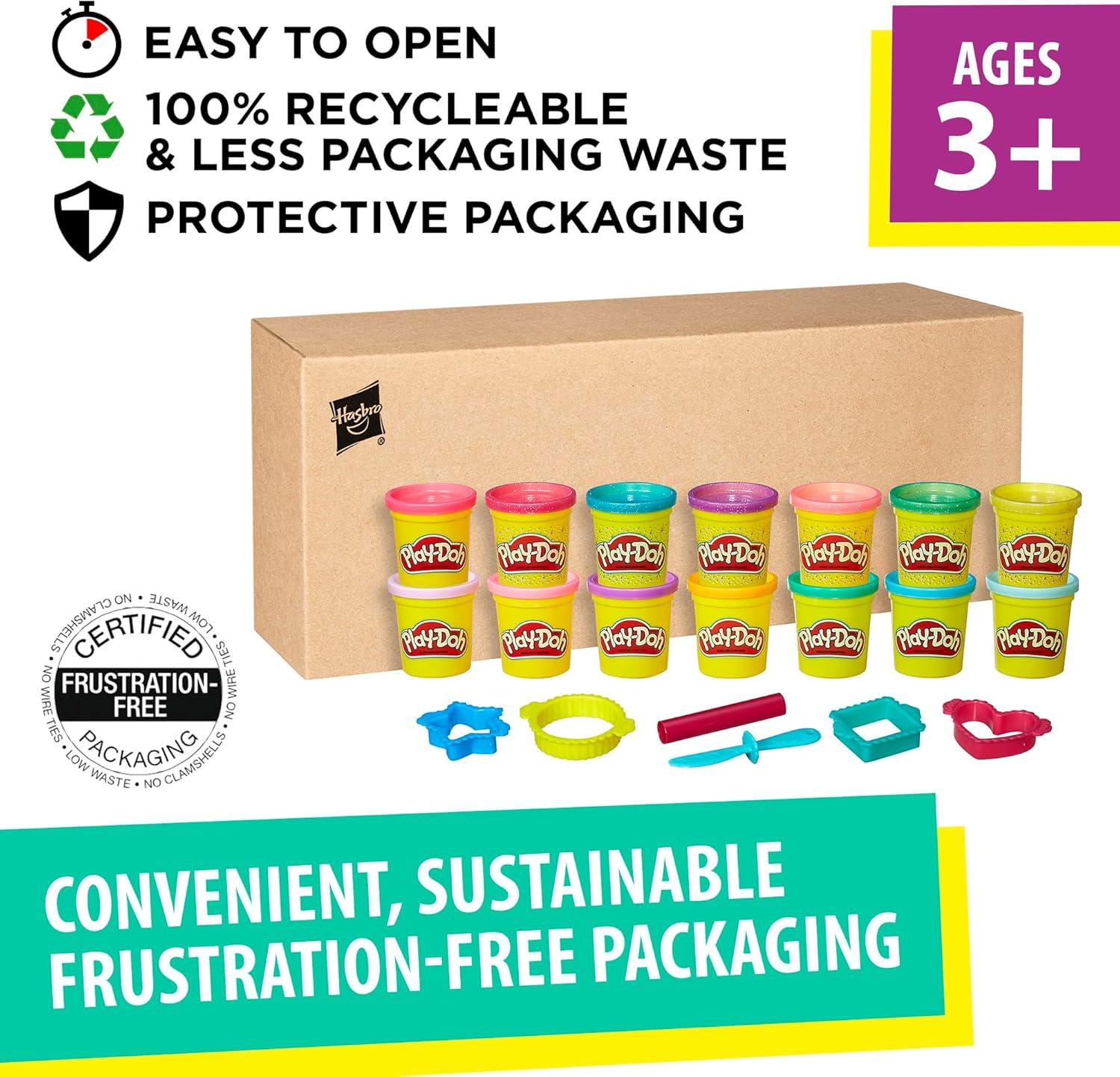 EASY-OPEN, RECYCLABLE PACKAGE – Ships in simple recyclable packaging that’s easy to open and frustration free, and the Play-Doh cans and lids are also recyclable to help build a more sustainable world.