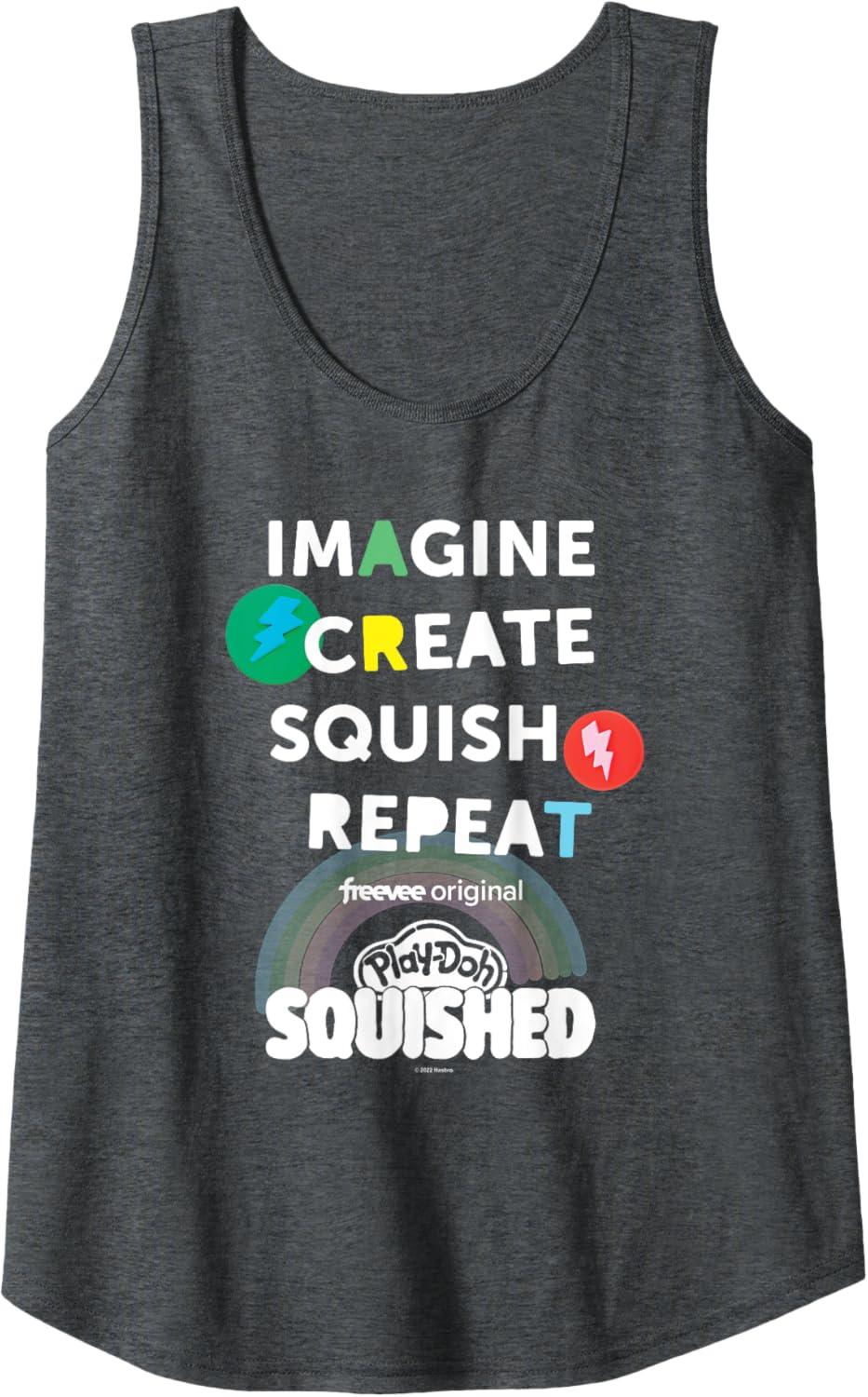 Be the first to review “Play-Doh Squished Imagine Create Repeat Rainbow Stack Logo Tank Top(Dark Heather Grey)”